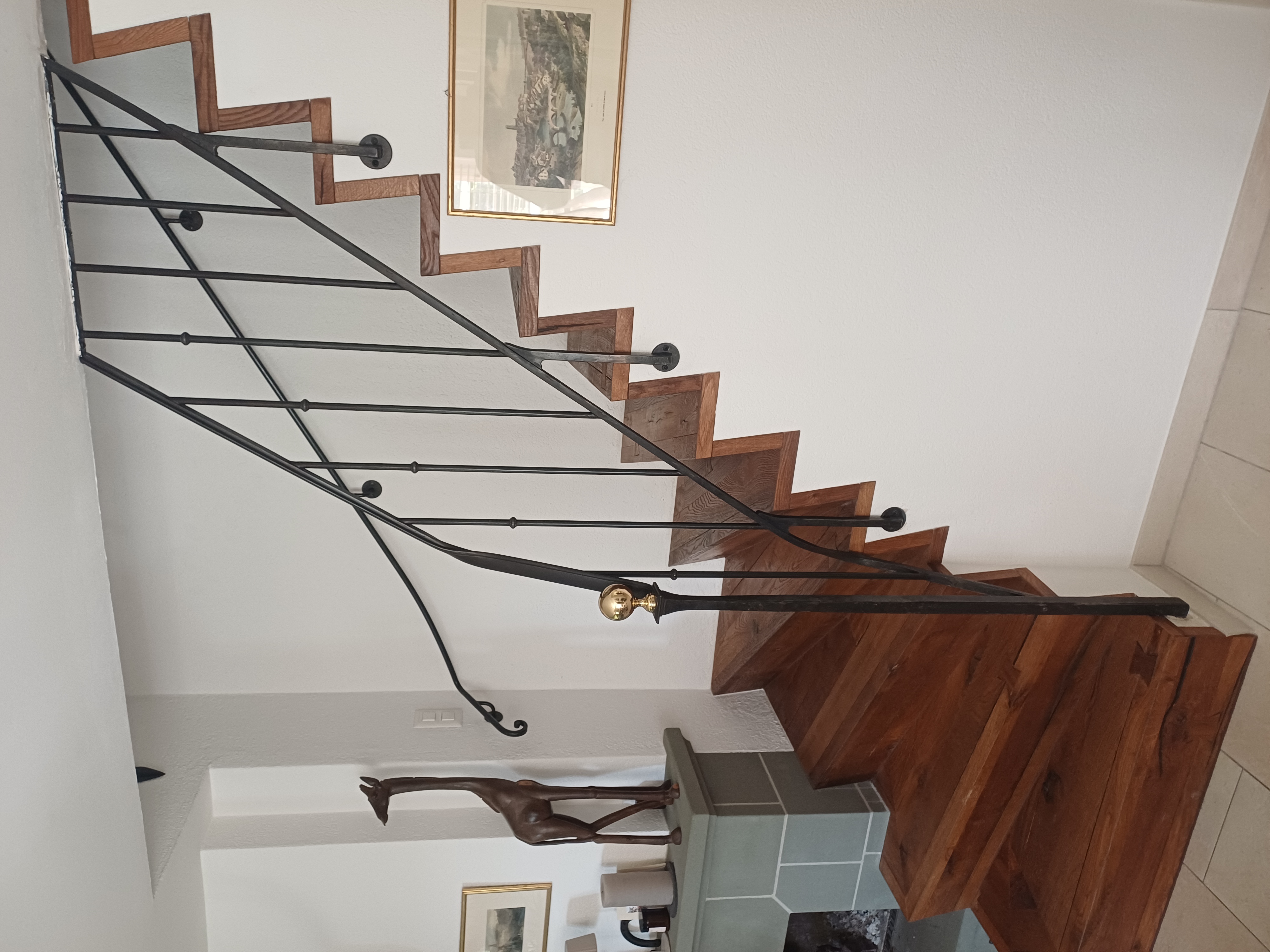 Rampe de type ancien sur escalier bois moderne