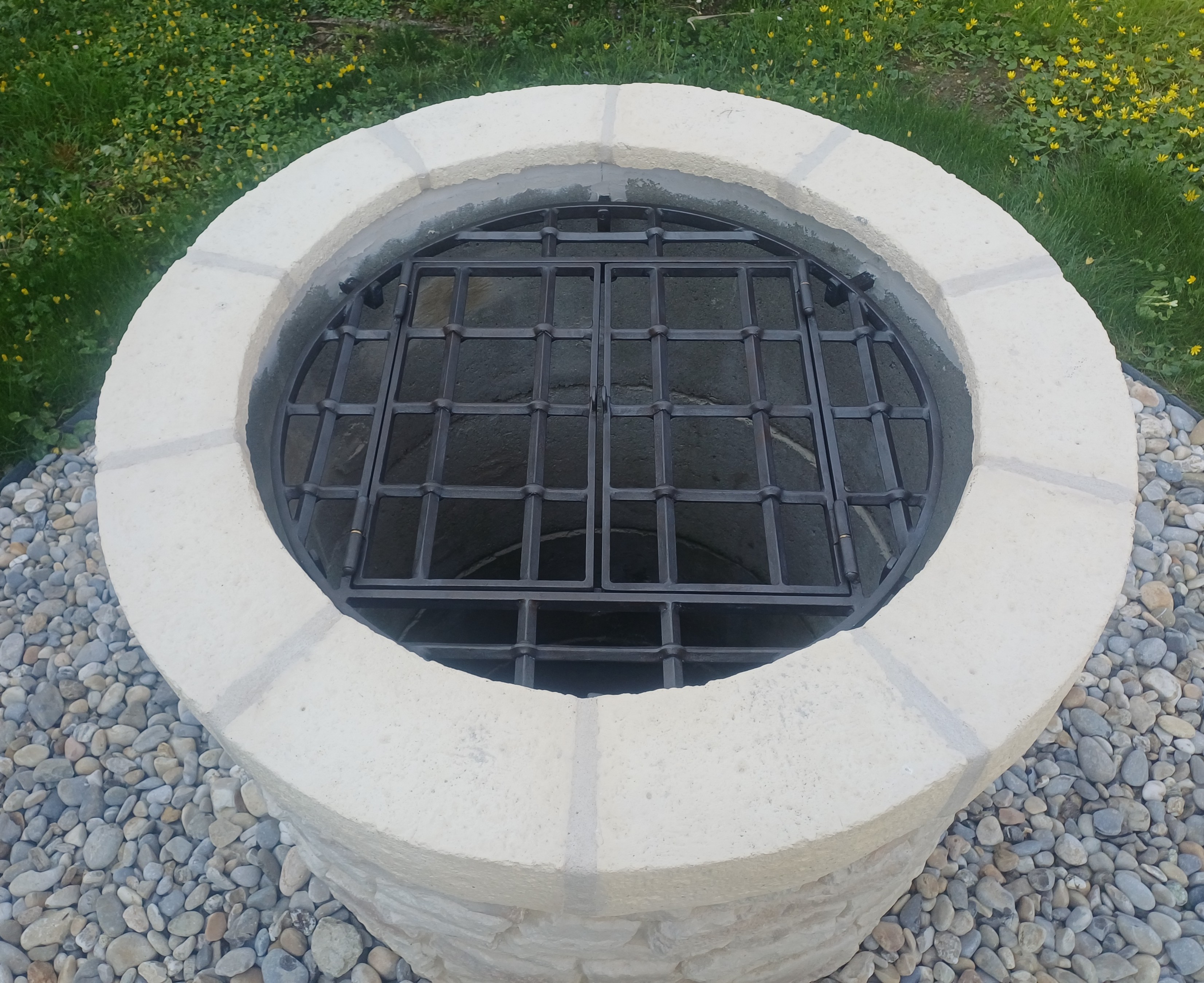 Grille de sécurité pour puits, en fer forgé.
